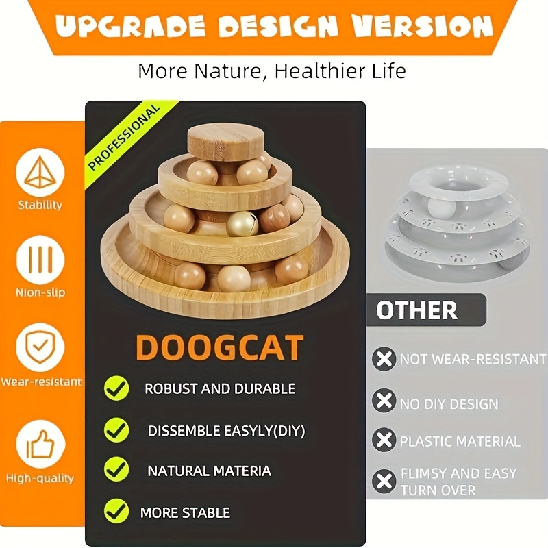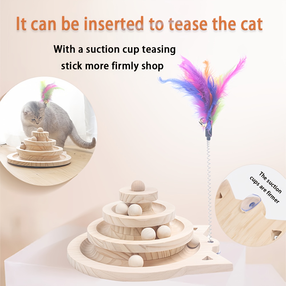 Interactive Cat Ball Track 3 Layer Tower Interactive Cat Ball Track | Natural Bamboo Wood with 9 Detachable Balls